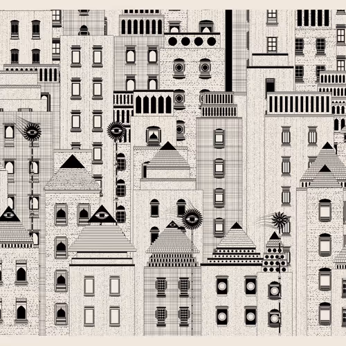 Art Blocks Collection: Curated Heritage Art Blocks Collection: Curated series 8 Project Description: _Alan Ki Aankhen_ is an exploration of other-worldly cityscapes in the visual aesthetic of Fahad’s distinct style with pen and paper. The title, translated as _Alan’s Eyes_, alludes to Alan Turing’s machine intelligence test - a thought experiment foreshadowing a moment in which we can no longer differentiate between the real and the artificial. Though first proposed in 1950, the topic feels especially relevant today, as even our creative practices are being carried by shifting technological tides. The algorithms and decision-making encoded into this generative art project intentionally imitate Fahad’s approach on traditional mediums - composition rules, textures, and overall themes. The visual elements are inspired by Fahad’s memories from his nomadic life. You’ll find intricate windows from Rajasthan, massive Egyptian pyramids rising from the horizon, a density of civilization only seen in New York, and the moon - a comforting and shared sight no matter where you stand.