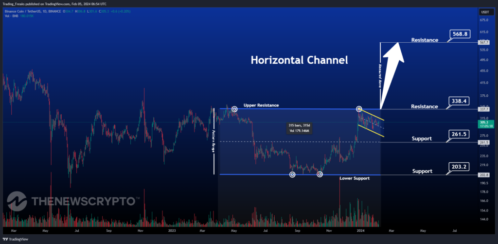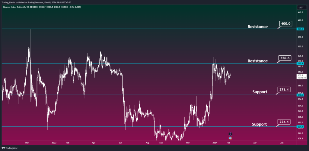 From the above chart, we can analyze and identify the following as resistance and support levels of Binance Coin (BNB) for 2024.