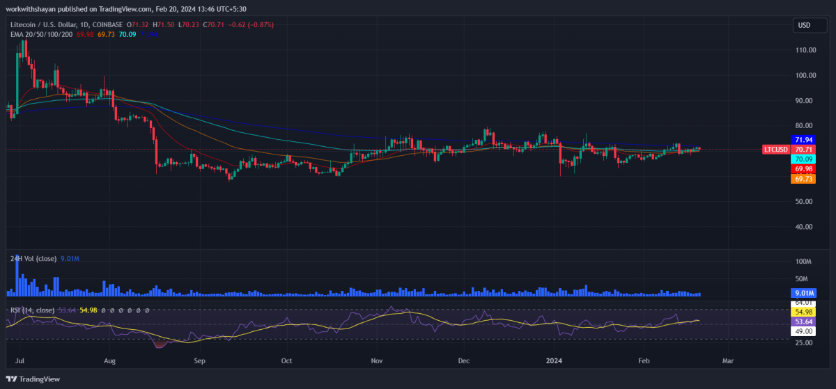 The LTC price analysis for 20 February confirms that bears are attempting to trigger a downward rally as LTC price recently met a surge in buying pressure and faced a correction near $72. However, the LTC price is currently facing a bullish dominance as it meets buyers’ demand.