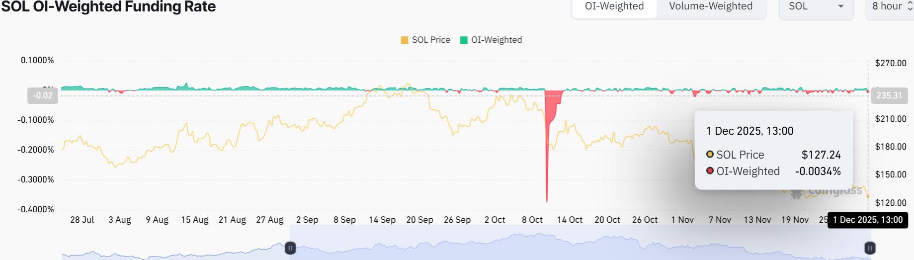 The Solana price is trading at $127, with the sell-off continuing, down 6.91% today. The high-speed blockchain is experiencing a risk-off mood in the derivatives market, as investors withdraw capital at risk, and bears are paying a premium to maintain short positions. Technically, Solana may continue to fall since bearish momentum remains on the rise.