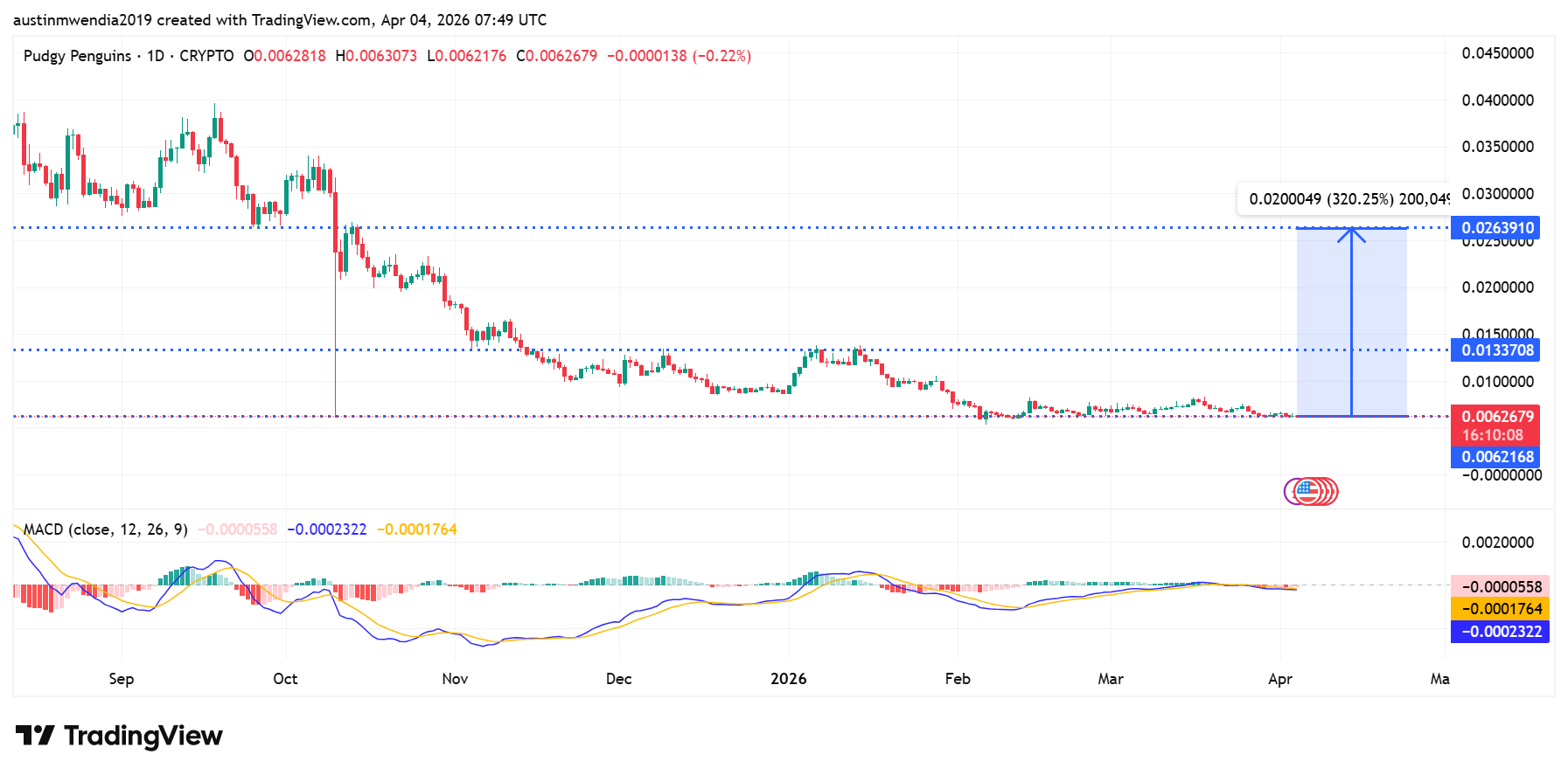 Pudgy Penguins is compressing above the $0.0062 support after a prolonged downtrend and is forming a strong base. Sellers tried to break this level several times but failed to sustain the downside pressure. As a result, this zone now acts as a strong demand area where buyers step in consistently. However, the market is still trading below $0.0133, which stands as the first major resistance level.