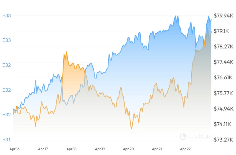 Bitcoin price staged a 6.4% recovery this week, briefly topping a 7-week high of $79,400 last seen at the beginning of February, as investors digested more rumors of peace negotiations in the Middle Eastern conflict.