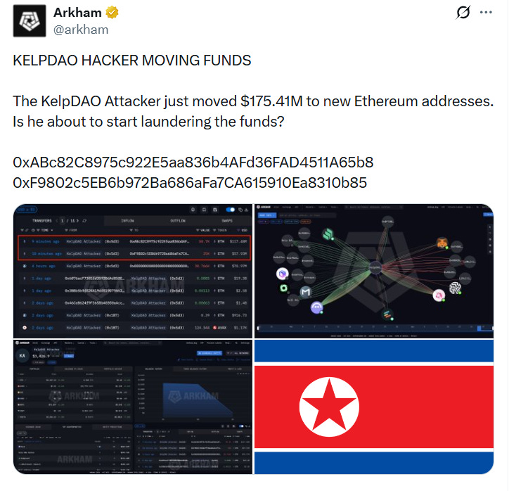 🚨 Kelp DAO hacked for $290 million, attackers launder $175 million