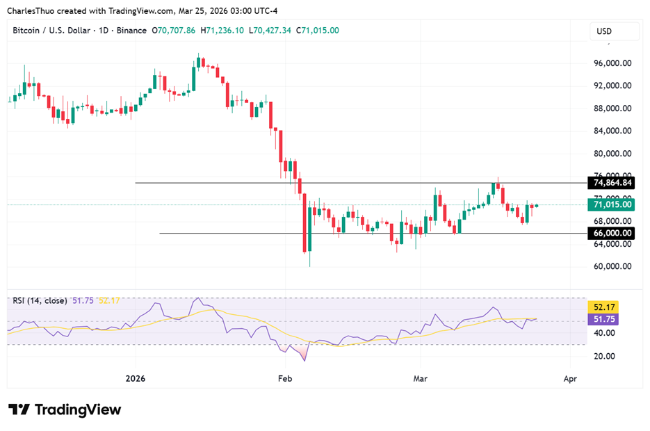 This shift in geopolitical tensions has helped BTC maintain its footing above $71,000, even as uncertainty still lingers in the background.
