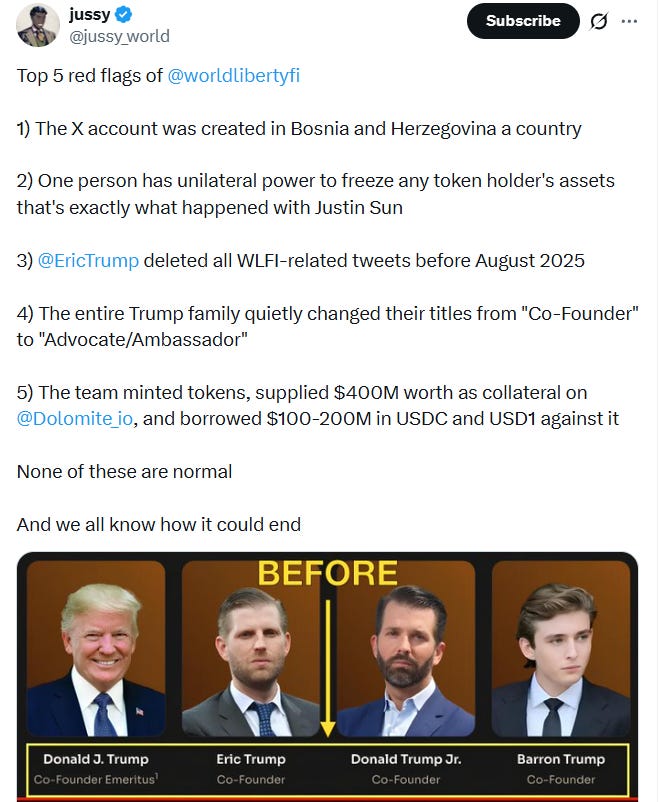 Erik and Baron Trump-founded WLFI platform is posing some huge red flags…🚩