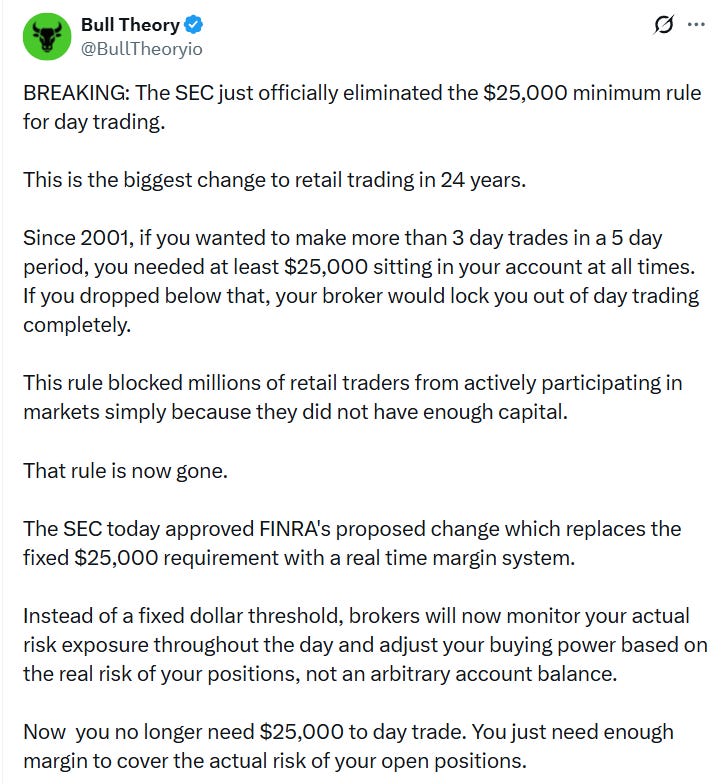 SEC eliminates $25,000 minimum rule for day traders in a big win for retail!