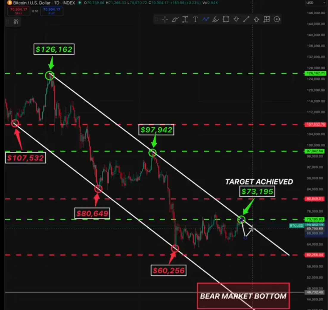 Onchain analyst Nonzee shared similar technical chart patterns pointing to a deeper bear market retracement, after his local top of above $73,000 was breached this week. He wrote: