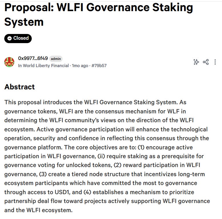 WLFI’s March governance vote to determine token lock-up periods saw 76% of the voting power coming from 10 wallets, a troubling sign that lacked transparency, claimed Sun in an X post: