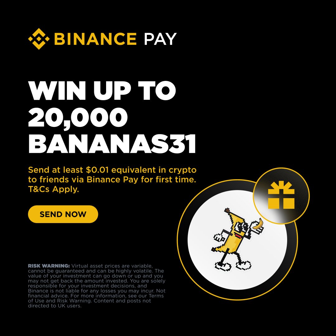 We’re giving away up to 20,000 $BANANAS31 tokens for first-time send users. Get in on the action via Binance Pay today!
