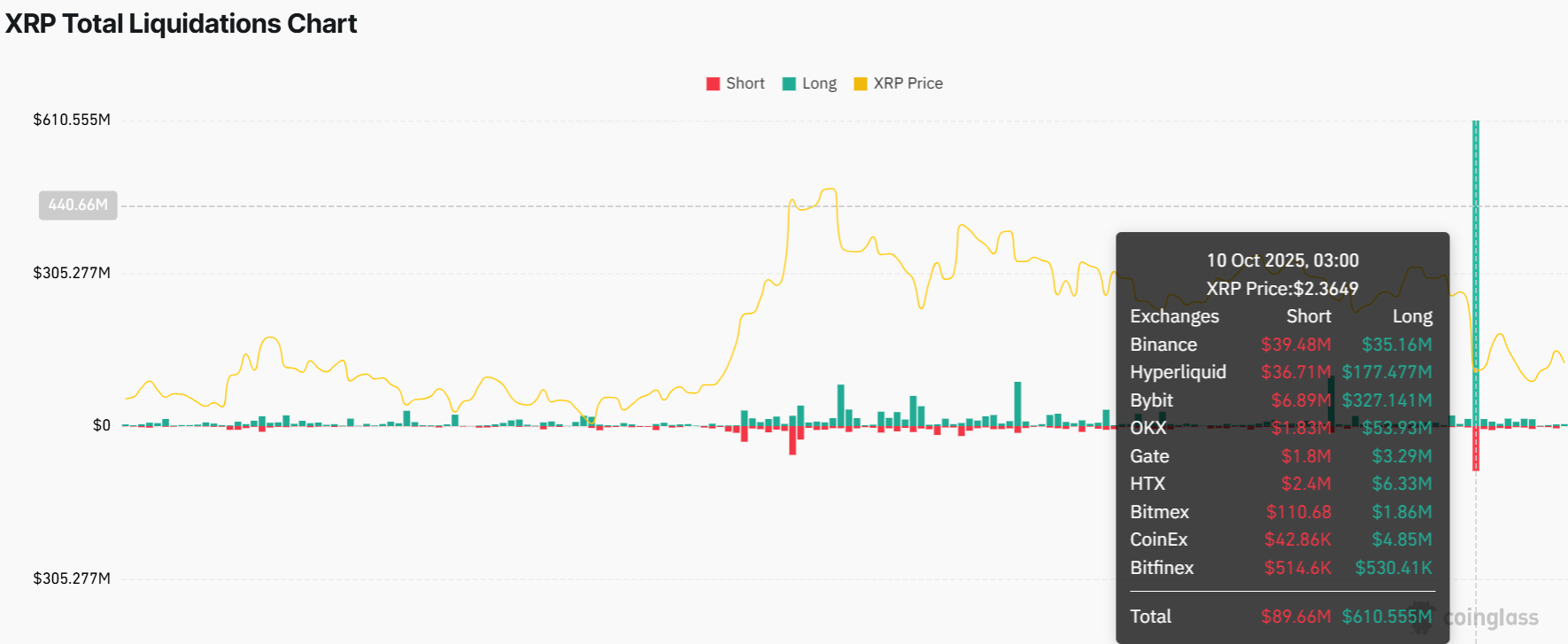 The market for XRP futures derivatives has been the weakest since April, even after the recent events of deleveraging. On October 10, long positions were sold for about $611 million and short positions for $90 million after United States (US) President Donald Trump indicated that he would impose a 100% increase in tariffs on Chinese products.