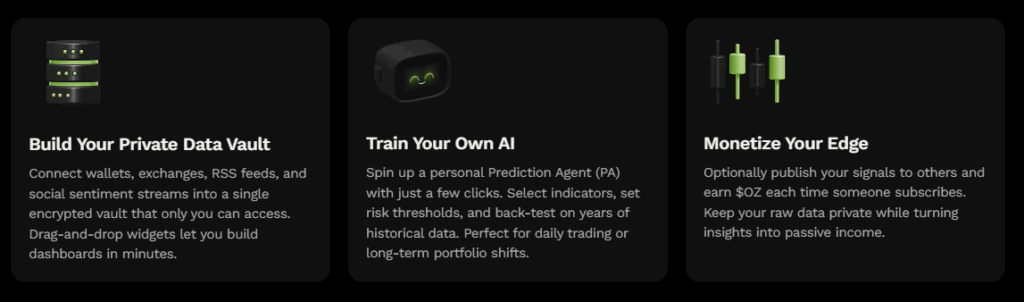 Ozak AI is a blockchain-based crypto project that provides a technology platform that specializes in predictive AI and advanced data analytics for financial markets. Through machine learning algorithms and decentralized network technologies, Ozak AI enables real-time, accurate, and actionable insights to help crypto enthusiasts and businesses make the correct decisions.