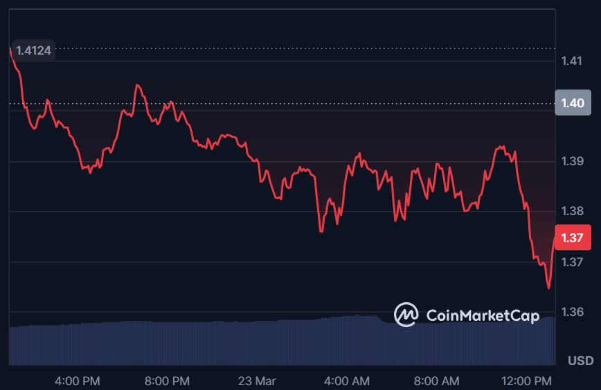 At the time of writing, the asset is trading around $1.37, with a 2.14% loss in value. Moreover, the daily trading volume has surged by over 14.57%, reaching the $1.64 billion mark. The Coinglass data has reported that the XRP market has seen a $5.62 million in liquidations.