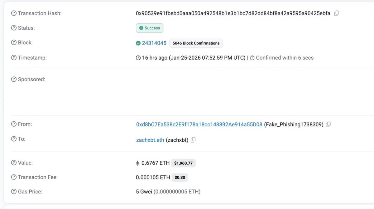 🚨 JUST IN: ZachXBT says 0.6767 $ETH in stolen US govt funds was sent to his public wallet by John (Lick).