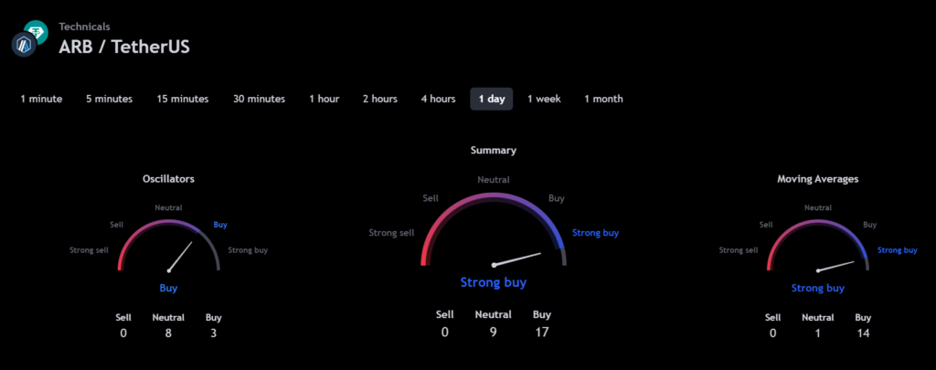 From the readings on the chart above, we can make the following inferences regarding the price momentum of Arbitrum (ARB).