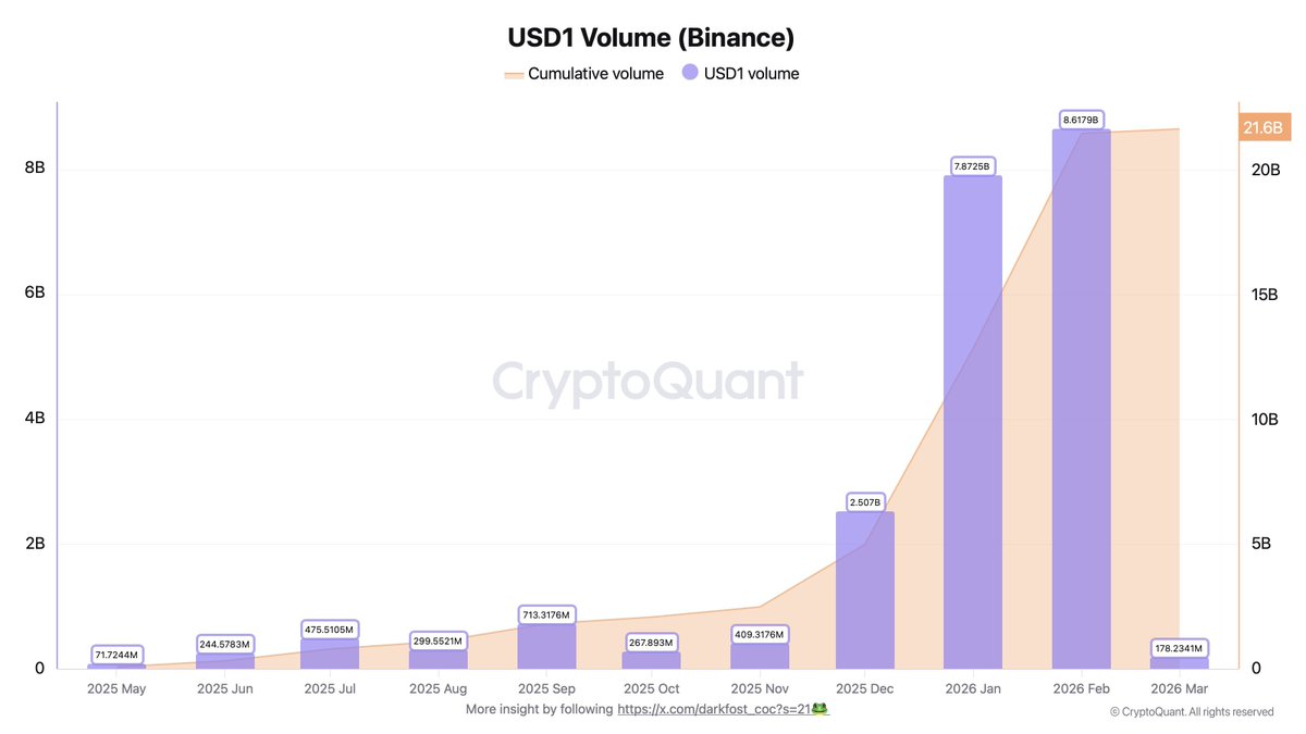 Stablecoin volume on CEXs have reached incredible levels this year. $USD1 hit $8.6B in February on Binance alone and more than $21B cumulative since launch.
