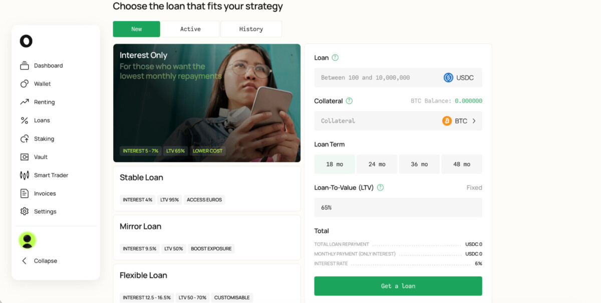 Interest rates for borrowing start from 4% APR depending on the type of loan chosen by the user. In terms of Loan to Value ratio, Nebeus offers one of the highest ceilings in the CeFi lending market today with an LTV of up to 95%. This is applicable to the StableLoan, which uses stables like USDC or EURC as collateral.Â