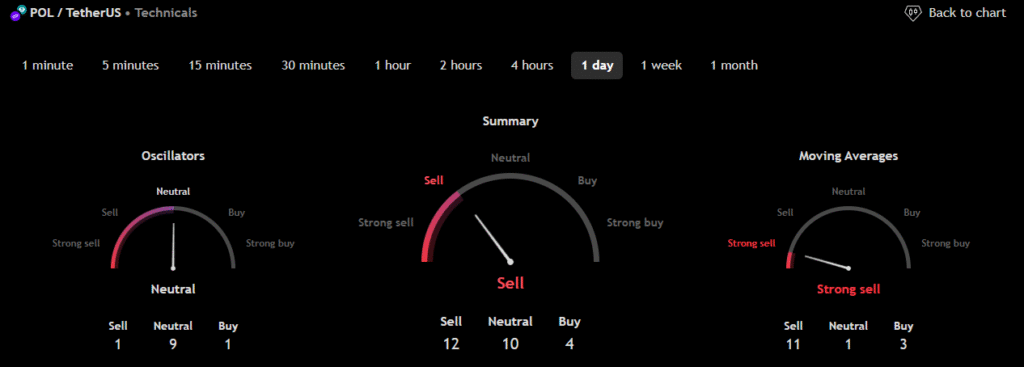 The technical analysis indicators such as Relative Volume (RVOL), Moving Average (MA), and Relative Strength Index (RSI) of POL (prev. MATIC) are shown in the chart below.