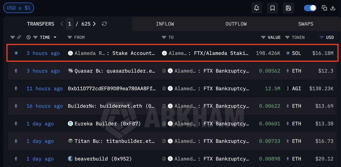 ⚡️ TODAY: FTX/Alameda Research unstaked and moved $16M of $SOL to a creditor distribution address, per Arkham. pic.twitter.com/36jvI39sqX