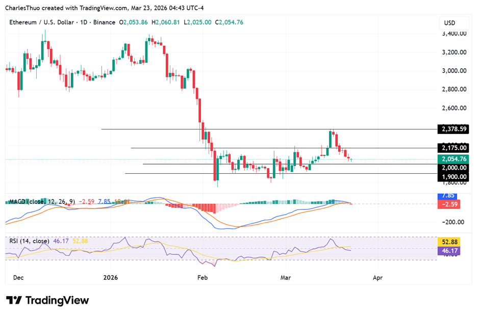 Ethereum is currently sitting near a critical support zone between $2,030 and $2,050.