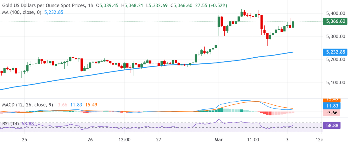 Gold prices rose slightly on Tuesday as safe-haven demand remained intact amid ongoing geopolitical tensions in the Middle East.
