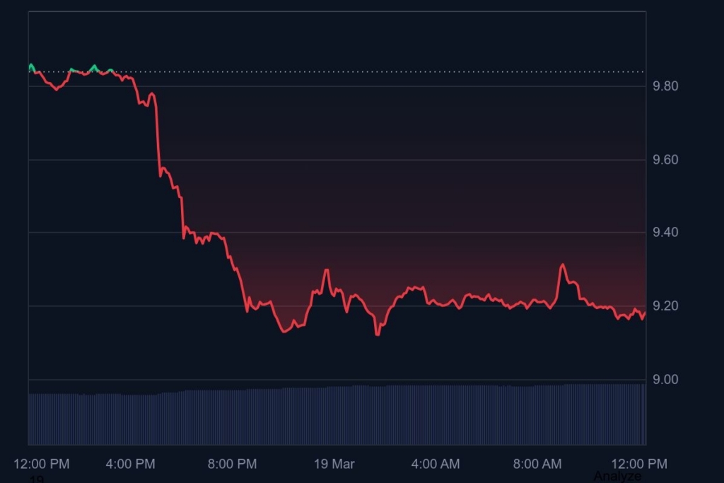 The asset opened the day trading at a high of $9.86, and with the bearish turn, the LINK price has slipped to $9.10. At press time, it trades at $9.15, with the trading volume soaring by 20.16% to $758.35 million. Meanwhile, the market observed a liquidation of $1.15 million worth of Chainlink.