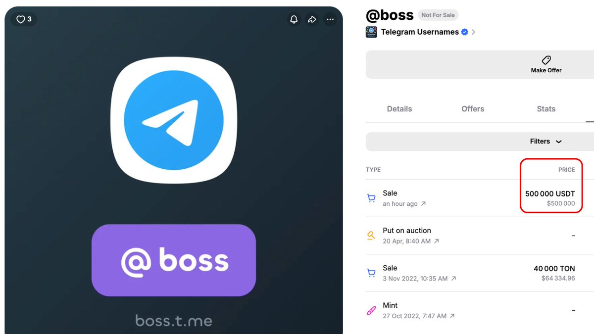 SALE: TON-BASED TELEGRAM USERNAME "BOSS" SOLD FOR 500K $USDT SOURCE: pic.
