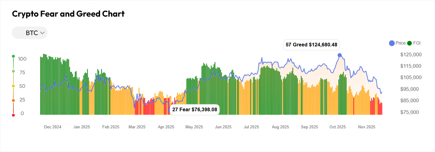 The growing whale wallets come during a period of peak retail investor panic, as crypto investor sentiment sank to 15, meaning “Extreme Fear,” marking its lowest point year-to-date in 2025, according to the CoinStats Fear & Greed index.