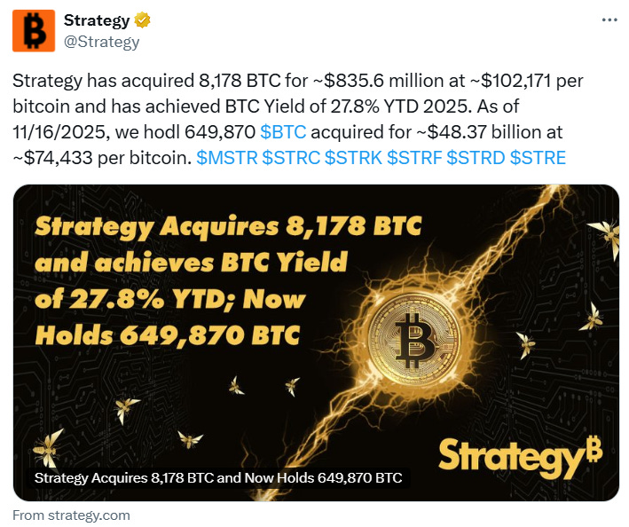 However, the latest $835 million Bitcoin investment from Strategy was not enough to counteract the billions sold by Bitcoin ETFs this month, leading to more downside until ETFs stop the sell-off ⚠️.