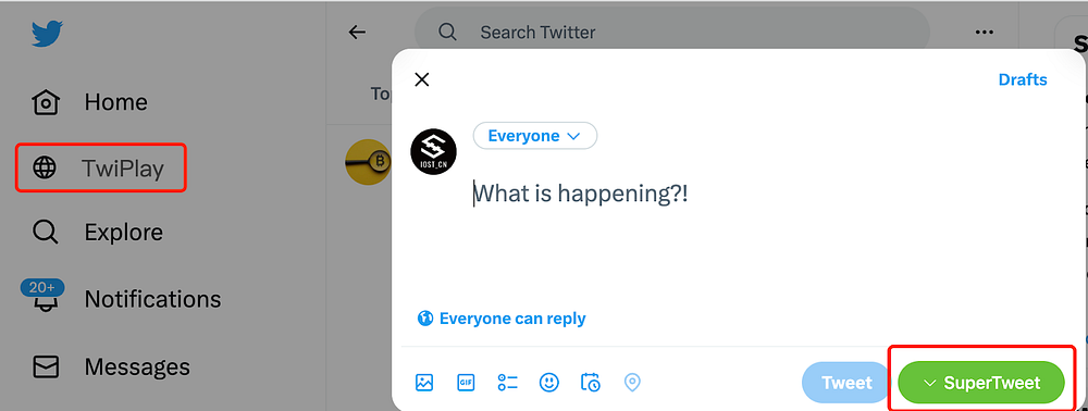 Step 3: Login to your Twitter account to publish a SuperTweet. Include the hashtags #IOST #IOSTinHK in your Supertweet to receive IOST and TPC