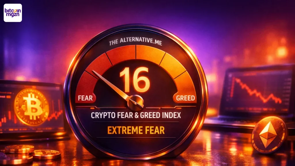 Crypto Fear & Greed Index zakt naar 16 en wijst op extreme angst