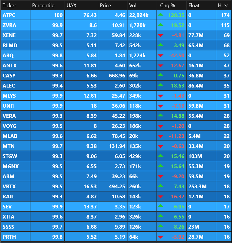 Small caps showing heavy momentum and sharp swings as the session begins.