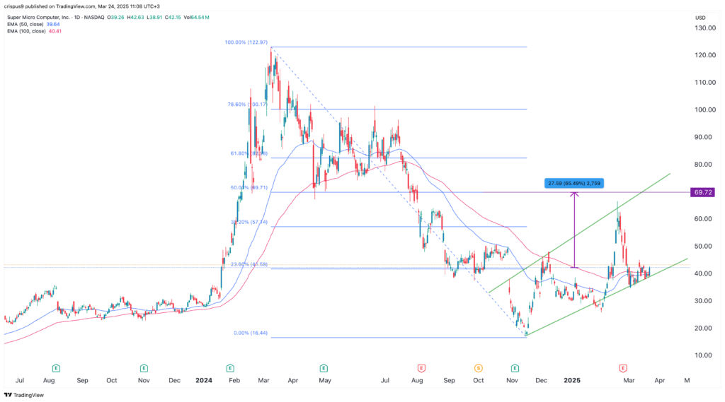 Super Micro Computer stock price remains in a bear market this year as concerns about the AI industry remains. SMCI was trading at $42 on Friday, down by about 37% from its highest point this year and 65% from its highest point in 2024. So, what next for the Supermicro share price this year after forming a megaphone pattern?