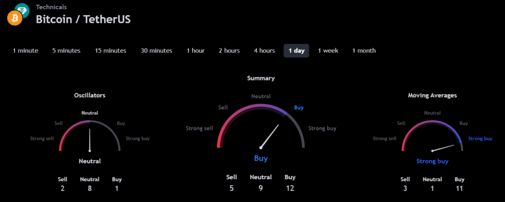 The technical analysis indicators such as Relative Volume (RVOL), Moving Average (MA), and Relative Strength Index (RSI) of Bitcoin (BTC) are shown in the chart below.