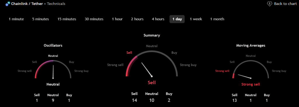 The technical analysis indicators such as Relative Volume (RVOL), Moving Average (MA), and Relative Strength Index (RSI) of Chainlink (LINK) are shown in the chart below.