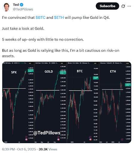 Following the United States government shutdown, more traders are now expecting both Bitcoin and Ether to follow gold’s rally 🏆.
