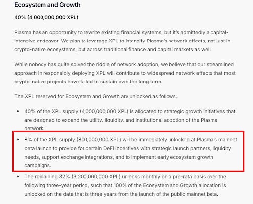 Some pointed to Plasma’s 8% supply 📊 set for ecosystem growth initiatives, which was unlocked at Plasma’s mainnet launch.