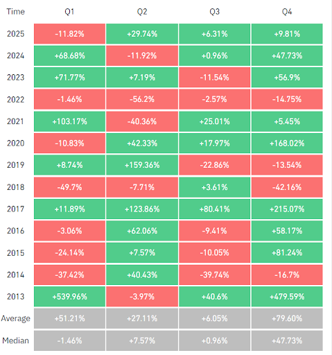 The fourth quarter of the year is historically the most bullish period 📈 of the year, with October, or “Uptober,” being the second-best year for Bitcoin, when looking at average historical returns data 📊.
