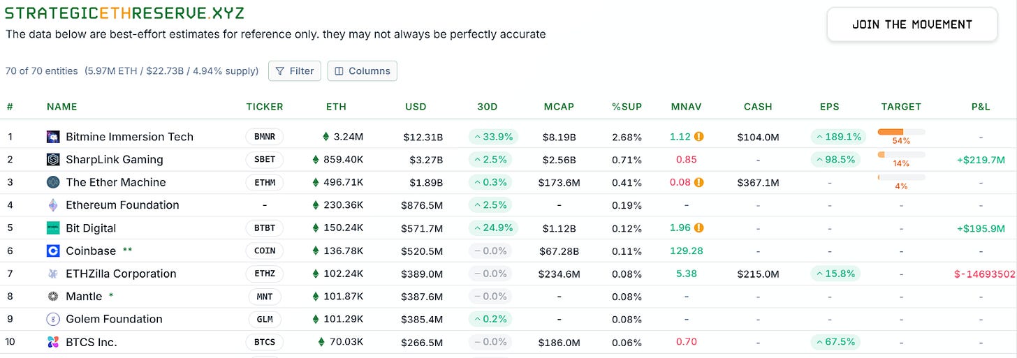 SharpLink was the first publicly-traded company 📈 to adopt an Ethereum treasury strategy. It is now the second-largest corporate ETH holder after Bitcoin miner Bitmine Immersion Tech (BMNR), which holds a massive $12.3 billion of Ethereum.