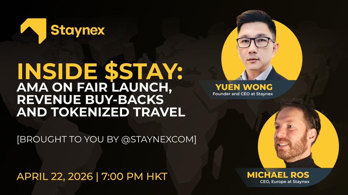 We’ll discuss why tokenizing travel stays puts Staynex in the RWA spotlight, how platform revenue buys $STAY from the market, and the first of three… pic.twitter.com/VKbGz5uXz2