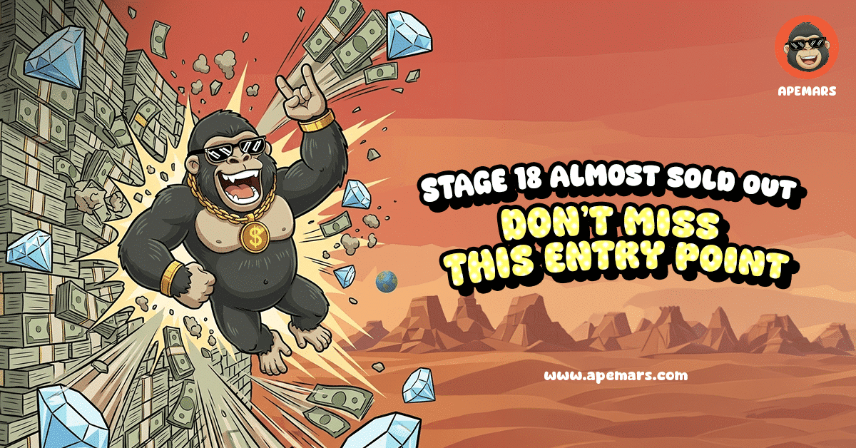 APEMARS is currently in Stage 18: BUTTON MASH, with a live presale price of $0.000288160 and a structured launch target of $0.0055, positioning early participants within a clearly defined growth model. The project has now raised over $447K, attracted 1689+ holders, and recorded 23.3B+ tokens sold, reflecting consistent inflow at the presale level. From Stage 18 pricing to listing valuation, the projected upside stands at approximately 1,808.66% ROI, while the earliest entry phases reflect an even higher theoretical upside of 1,596.05% ROI. This structured escalation is why APEMARS is increasingly mentioned in discussions around the evolving top 100x meme coin 2025 rotation cycle.