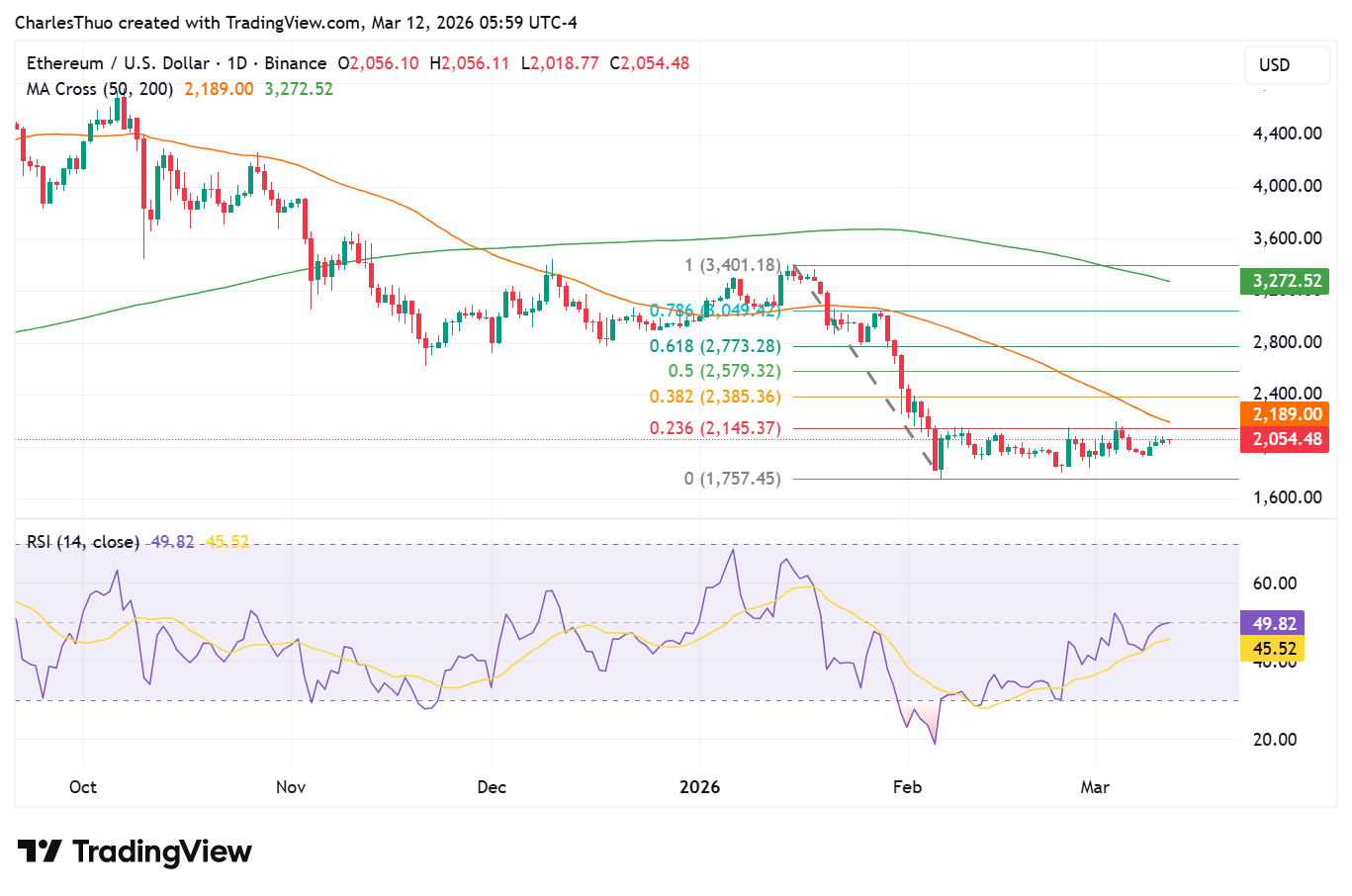 A breakout above $2,189 could open the path toward $2,396, and potentially $2,525 if buying pressure remains strong.