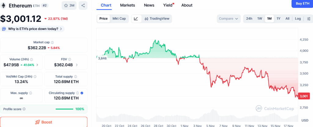 Ethereum keeps a solid market shape at the same time as trading around $3,001, supported with strong liquidity and rising adoption of Layer-2 scaling solutions. Price movement stays bullish so long as ETH holds above $2,920, $2,810, and $2,720, key support zones that continue to attract investors for the duration of pullbacks.