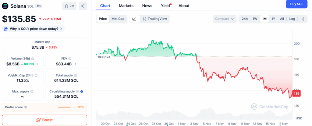 Solana also indicates a strong upward structure around $135, supported by way of expanding user interest, growing TVL, and its recognition as one of the fastest networks in the enterprise. Buyers continually shield predominant levels at $130, $122, and $114, reinforcing confidence as Solana stabilizes ahead of possible next-leg rallies.