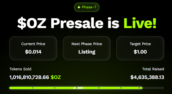 Presale traction continues accelerating as Ozak AI surpasses 1 billion tokens sold and more than $4.8 million raised. Early investors recognize that Ozak AI’s low market cap and advanced technical architecture create a rare opportunity for exponential upside once exchange listings begin. The project benefits from having no traditional resistance levels limiting early growth, allowing for near-unrestricted price discovery during its launch phase. Rapid community expansion, strong partnerships, and a clear utility position make Ozak AI a leading candidate for a potential 50x–100x breakout in the next bull run.