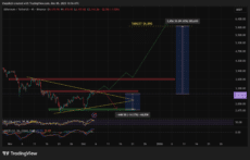 ETH chart shows a structure formed through a set of lower highs and higher lows. A break above the red resistance band near $3,600 could push prices toward $4K and then $5K.