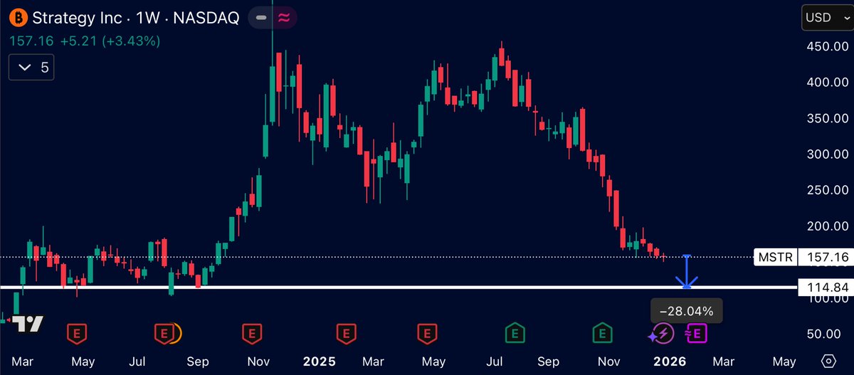 $MSTR is still in a downtrend after another RED weekly close 🔴 Another -28% and it would come into demand