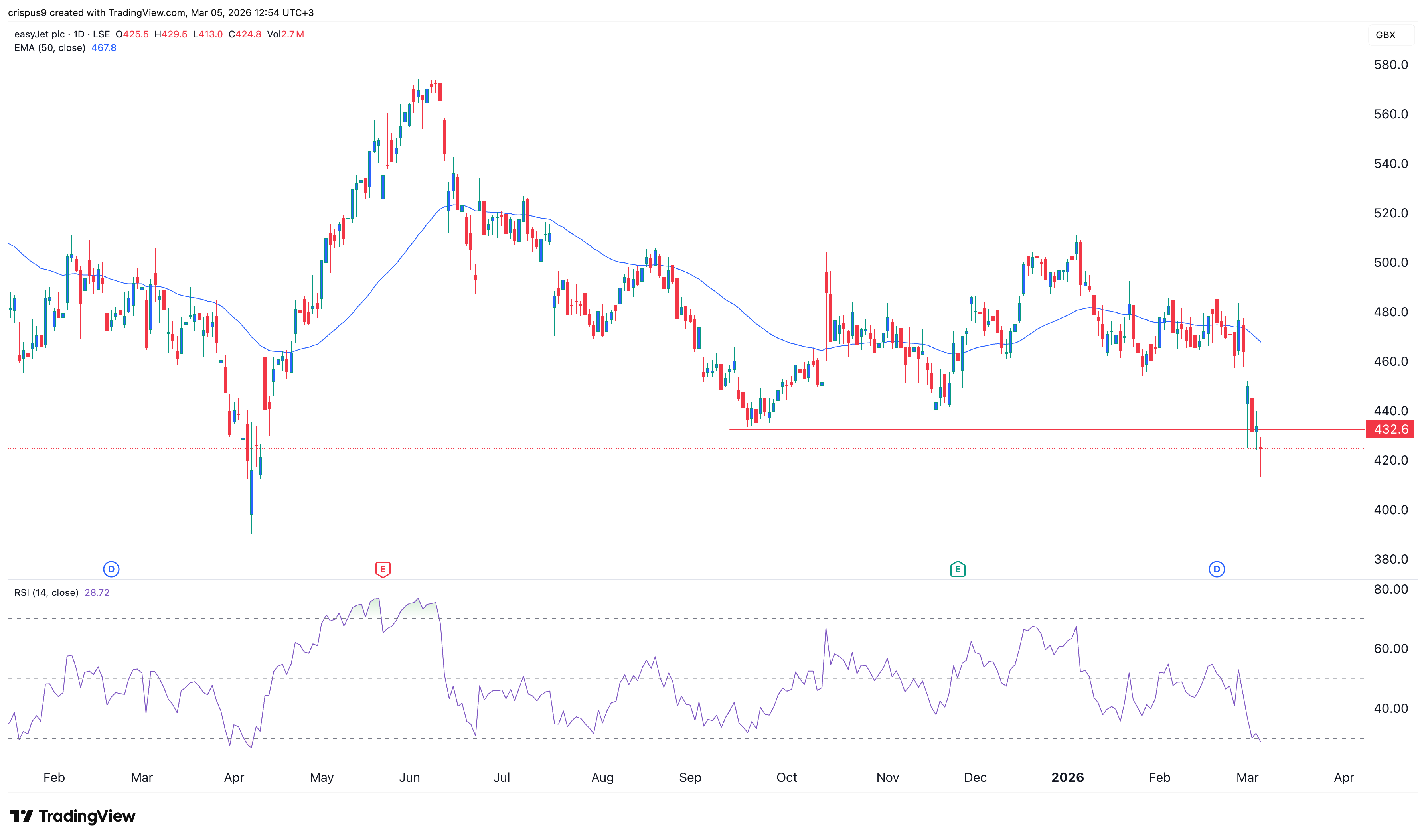 EasyJet share price continued its strong downward trend this week, reaching its lowest level since April last year as the company faces a double whammy of higher fuel prices and business disruption during the ongoing war in Iran.