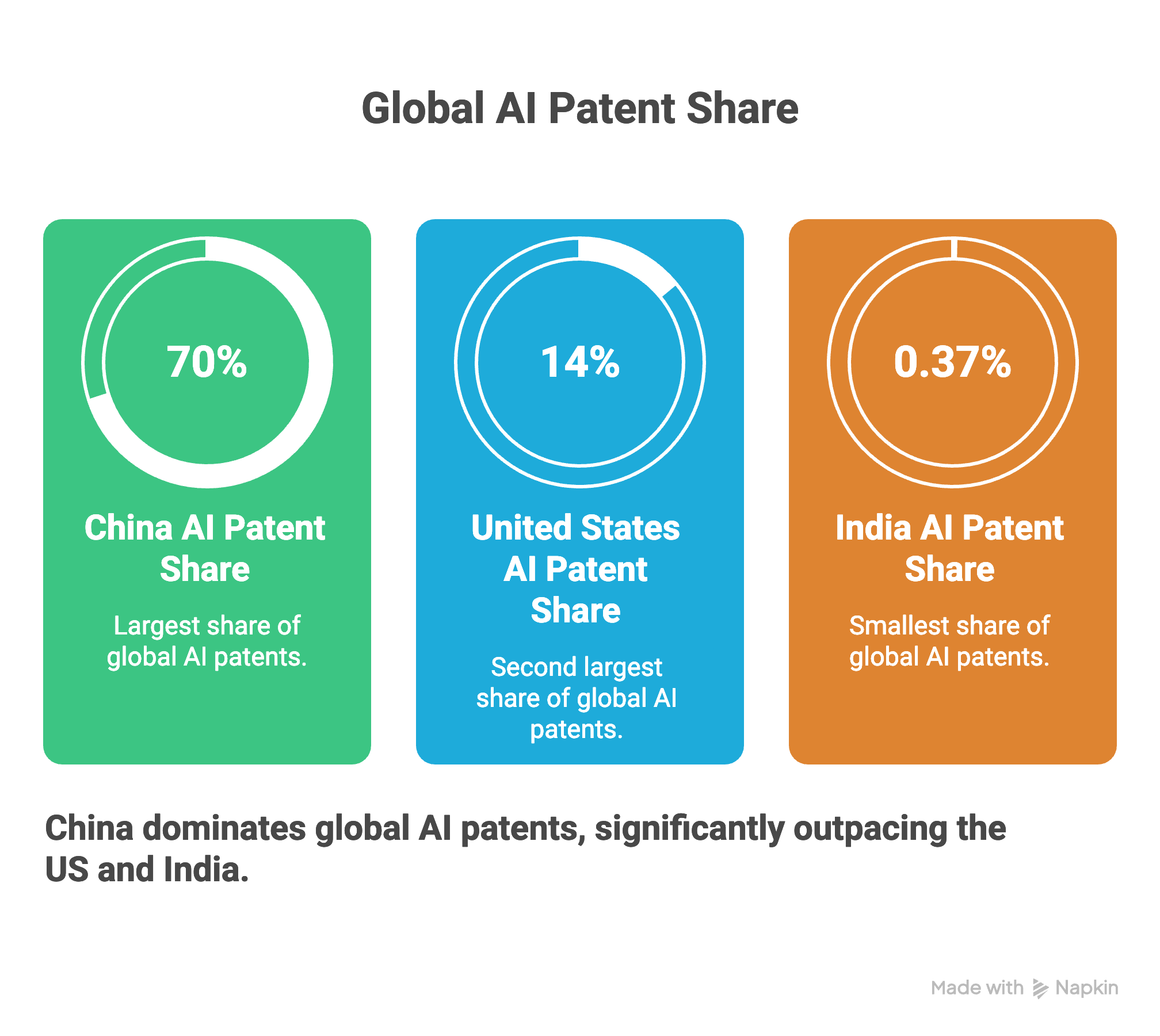 Several compilations and policy-facing summaries have highlighted how small India’s slice of global AI patents remains compared to the two largest AI powers.