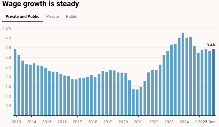 Wages rose 3.44% in 2025 and inflation came in at 3.76%, which means that real wages dipped slightly over the year.