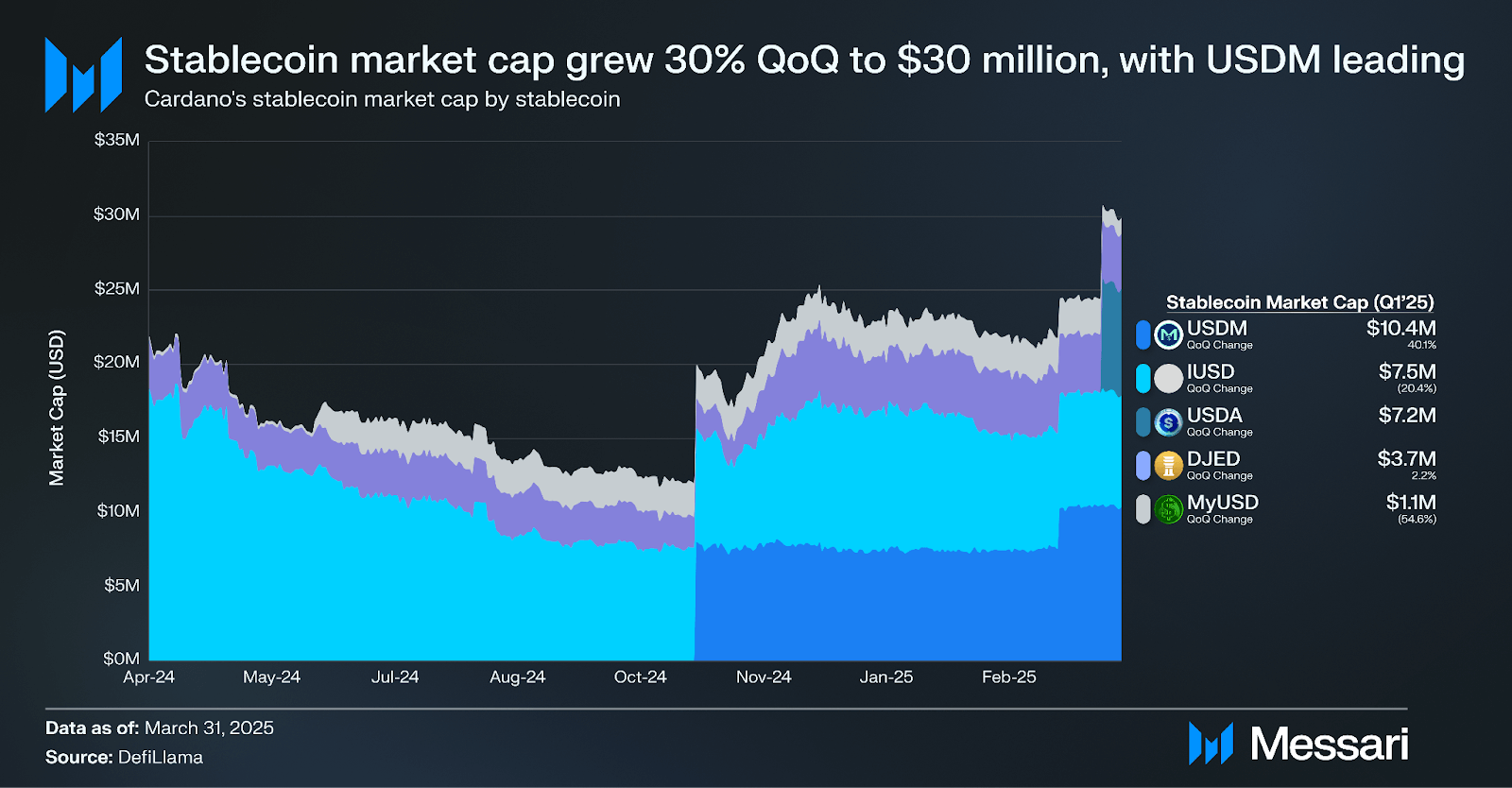 Leading analytics platform Messari has released a new report on Cardano, highlighting key developments in the ecosystem in Q1 2025.